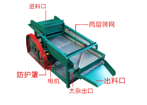 進(jìn)行初次篩分層篩分,以比較大的網(wǎng)孔,作為大塊雜質(zhì)篩分,如玉米芯,黃豆片,花生皮等等。大的雜質(zhì)會(huì)留在層篩網(wǎng)中,通過(guò)電機(jī)來(lái)回篩選抖動(dòng),把雜物振到雜物出料口,需要篩分的物料會(huì)漏到下層篩網(wǎng)中,進(jìn)行下一層篩網(wǎng) 層篩網(wǎng),網(wǎng)目比較小,也就是糧食機(jī)的小塊雜質(zhì),篩網(wǎng)網(wǎng)孔比需要篩分的物料大。