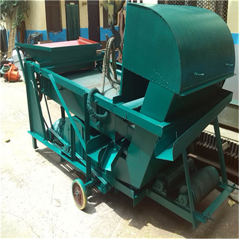 本機(jī)為三層篩網(wǎng),先經(jīng)過(guò)進(jìn)料口處風(fēng)機(jī)抽風(fēng),直接抽走重量輕的雜葉或麥秸稈,上層篩的初次篩分再把大雜清理過(guò),好的糧食(種子)直接落到下層篩網(wǎng)上,下層篩網(wǎng)會(huì)把糧食(種子)中的小雜.小石子.有缺陷的糧食(種子)直接漏掉,完好的糧食(種子)會(huì)從出料口篩分出來(lái)。該小型清糧機(jī)解決了揚(yáng)場(chǎng)機(jī)的功能單一,不能有效去除石子.土塊的缺陷,更能為清理、凈選糧食(種子)帶來(lái)滿意的效果。該機(jī)有占地小,移動(dòng)方便,便以維修,除塵除雜效率明顯,能耗低,使用簡(jiǎn)便等優(yōu)點(diǎn)。