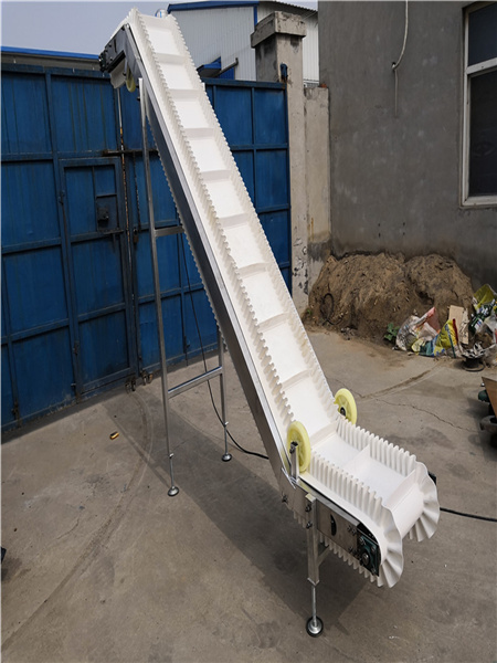 裙邊皮帶輸送機常用于輸送小型、顆?;蚍勰町a(chǎn)品,裙邊為熱熔在輸送帶兩側(cè)波浪起伏狀的帶狀皮帶護(hù)邊,為防止微小產(chǎn)品從皮帶縫隙掉落到皮帶輸送機內(nèi)。