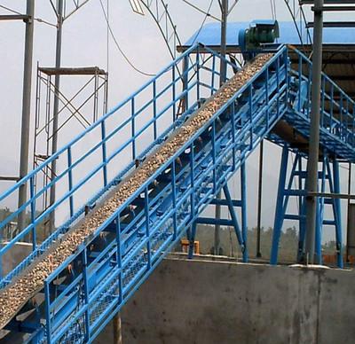 移動式皮帶輸送機(jī),膠帶主要有寬度500、600、650、800mm,1000、1200、1500等特殊規(guī)格可以另行設(shè)計(jì),皮帶輸送機(jī)是一種連續(xù)輸送散狀物料或成件物品的運(yùn)輸設(shè)備,具有結(jié)構(gòu)緊湊,工作性能可靠、輸送量大、生產(chǎn)效率高、操作靈便等優(yōu)點(diǎn),廣泛運(yùn)用于港口、碼頭、車站、倉庫、料場、廠礦等地輸送煤炭、砂石、糧食、化工原料、成件物品等。輸送機(jī)配有行走輪,可作整機(jī)移動,輸送傾角可以根據(jù)實(shí)際需要調(diào)整,大傾角為22度,變幅機(jī)構(gòu)可以手動調(diào)整,也可以采用電動執(zhí)行;根據(jù)輸送工藝布置要求,可以單機(jī)或多臺組成水平或傾斜的輸送系統(tǒng)。
